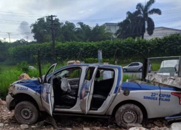 Viatura fica destruída durante perseguição em Simões Filho