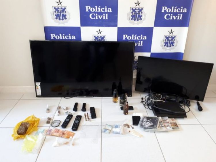 A quantia de mil reais em dinheiro, um tablete de maconha, 280 pinos de cocaína e 20 gramas da mesma droga, além de dois carregadores de pistola, 18 munições, um aparelho de choque elétrico e dois televisores foram apreendidos durante a ação.
