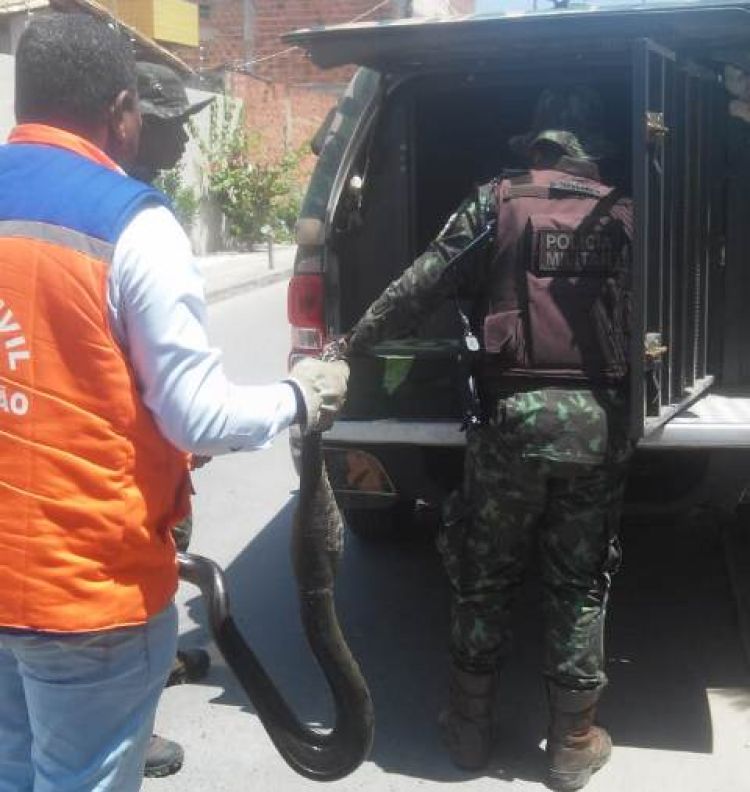 Um filhote de sucuri com aproximadamente 3 metros, foi resgatada por uma equipe da defesa Cívil, nesta terça-feira (18.09), em um corrego que corta a localidade de Morada Nobre, em Abrantes. De acordo informações do coordenador Ivanaldo, o animal estava com uma argola de plástico no pescoço que se não fosse retirado a cobra morreria. Moradores já reclamavam afirmando que a referida cobra estava comendo galinhas patos e animais de pequeno porte ás margens do corrego.Uma guarnição da Companhia de Polícia de Proteção Ambiental (COPPA) levou o animal para o zoológico onde será examinada por uma equipe do Ibama, e devolvida a natureza.