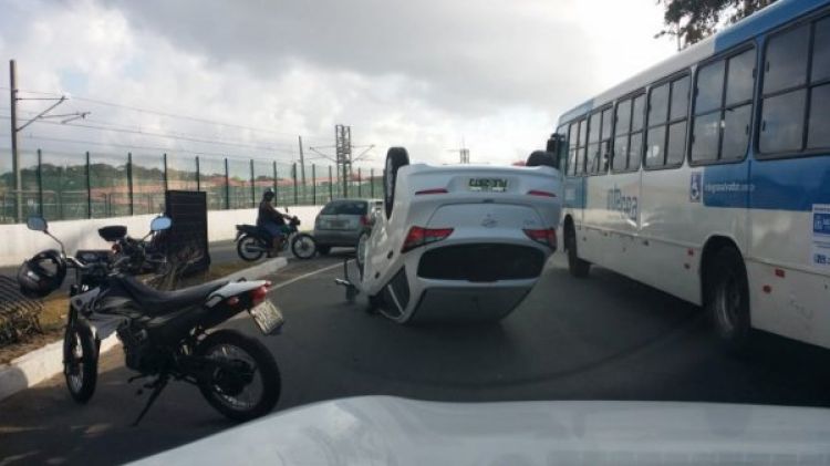 Um veículo modelo HB20 capotou na manhã deste sábado (13), na Avenida Paralela, em Salvador. De acordo com informações, o motorista teria perdido o controle. Ele sofreu ferimentos leves e foi socorrido por populares.