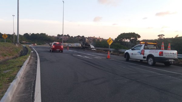 A Bahia Norte informa que a carreta que tombou próximo à Praça de Pedágio da CIA-Aeroporto (BA-526), no último sábado (05/01), será retirada nesta quinta-feira, 10 de janeiro. Por esse motivo, entre 12h e 14h, a alça exclusiva que liga a BA-535 à Cia - Aeroporto (BA-526), sentido Salvador, estará bloqueada. Equipes de operações da Bahia Norte e a PMRV estarão no local orientando os motoristas que passarem pela região.