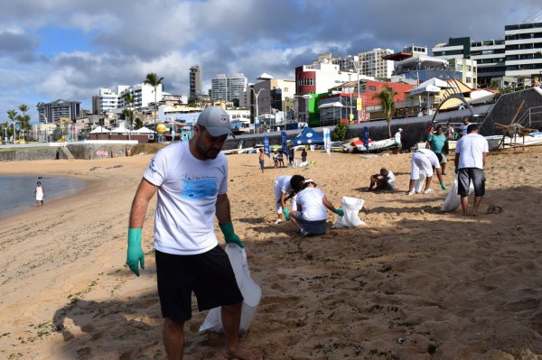 De luvas nas mãos e muita vontade de contribuir para devolver a praia limpa à Colônia de Pescadores e aos turistas, os voluntários do projeto Praia Limpa é nossa onda chegaram bem cedinho à Praia de Santana, no Rio Vermelho, no domingo (3), um dia após a tradicional Festa de Iemanjá. Durante quase 4 horas de caminhada pela areia, muito papel, plástico, cacos de vidro, bitucas de cigarro, tampas e garrafas pet, entre outros objetos, foram recolhidos do local.