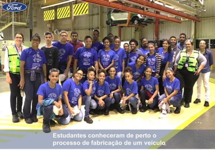 Setenta e cinco alunos do Ensino Médio que participam da quarta turma do Programa Ford de Educação para Jovens realizaram visita à fábrica de Camaçari (BA) neste mês. Durante o tour na unidade, eles passaram pelos prédios da carroceria e da montagem final e, assim, puderam conhecer de perto o processo de fabricação de um veículo. ???Foi uma experiência incrível, muito diferente do que eu imaginei. Tudo é tão tecnológico e perfeitamente sincronizado. As pessoas que nos receberam foram muito acolhedoras e todos os empregados, extremamente educados. Foi uma tarde de muito aprendizado e ver o nascimento de um carro até sua finalização me deixou bem impressionada???, disse Anna Carolina Oliveira, 16 anos, aluna do 3° ano no Colégio Estadual Professora Nadir Araujo Copque.