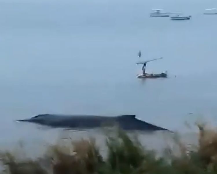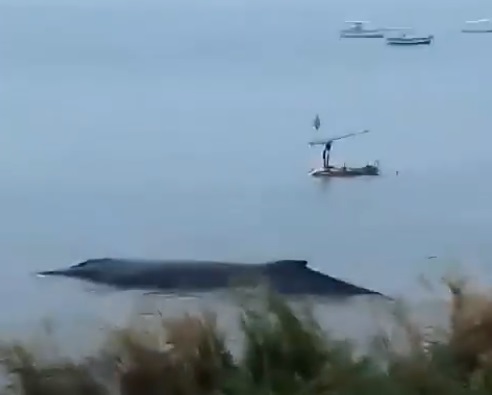 Moradores e pescadores da região que encontraram a baleia, estão tentando manter ela viva jogando água no animal, até que os órgãos ambientais assumam o caso. O Instituto Brasileiro do Meio Ambiente e dos Recursos Naturais Renováveis (Ibama), Instituto Baleia Jubarte e Corpo de Bombeiros foram acionados.