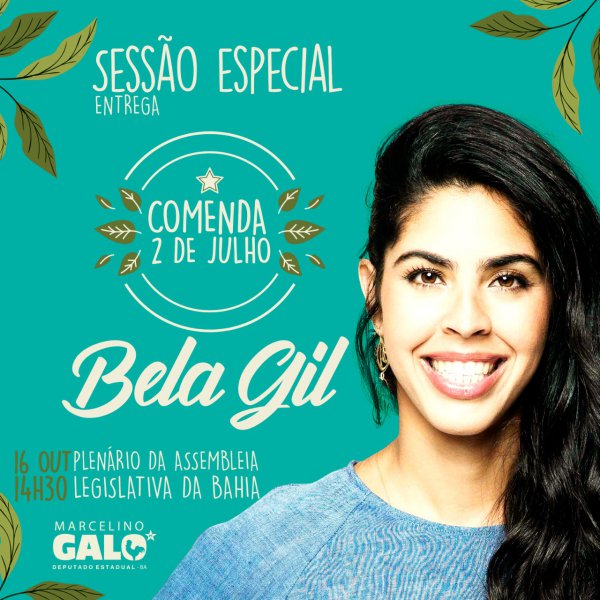 No próximo dia 16 de outubro, data que se comemora o Dia Mundial da Alimentação, a apresentadora e culinarista baiana, Bela Gil, estará na Assembleia Legislativa da Bahia para discutir as alternativas para uma alimentação saudável e consciente. Além disso, a ativista receberá a maior honraria concedida pela Casa Legislativa, a Comenda 2 de Julho.