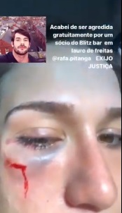 Em outra imagem a vítima ressalta que: “Não adianta desativar a conta, se acovardar mais uma vez que você vai ser achado Rafa Pitanga, responsável por me deixar desacordada no Blitz Music Bar. Ele e mais quatro seguranças do Blitz agrediram meu namorado, mas contente, vieram e me agrediram. Estou agora no hospital, cinco pontos na testa, esperando para fazer a tomografia, obrigado, seu covarde de merda”, finalizou.