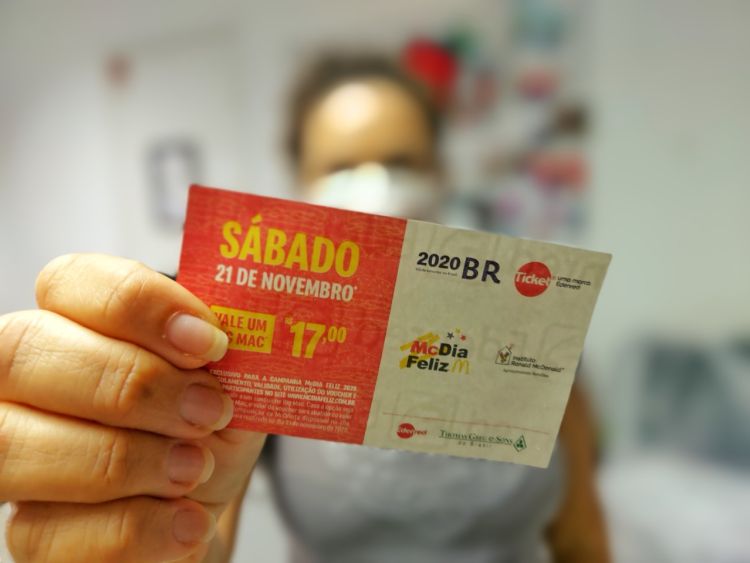 O tíquete antecipado custa R$ 17 e a venda será realizada na lojinha virtual do Hospital (https://lojinha.martagaogesteira.com.br/) e em sua sede, assim como por meio dos voluntários do Martagão. Ele pode ser trocado por um Big Mac no dia 21/11. É possível comprar, também, o voucher virtual, novidade nesta campanha, por meio de e-commerce do Instituto Ronald McDonald (http://www.giftty.com.br/mcdiafeliz/mcd/HMG).