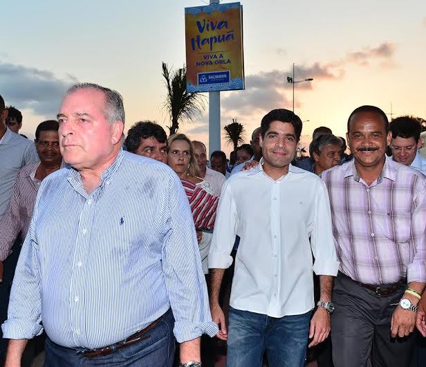 Líder da oposição em Camaçari, o vereador Elinaldo (DEM) participou da inauguração das orlas de Itapuã e Piatã e aproveitou o evento, que reuniu cerca de 40 mil pessoas, para conversar com o prefeito ACM Neto. “A popularidade do prefeito ACM Neto é impressionante. É essa vontade de governar para o povo, fazendo obras estruturantes em toda a cidade, que quero levar para Camaçari”, afirmou Elinaldo.
