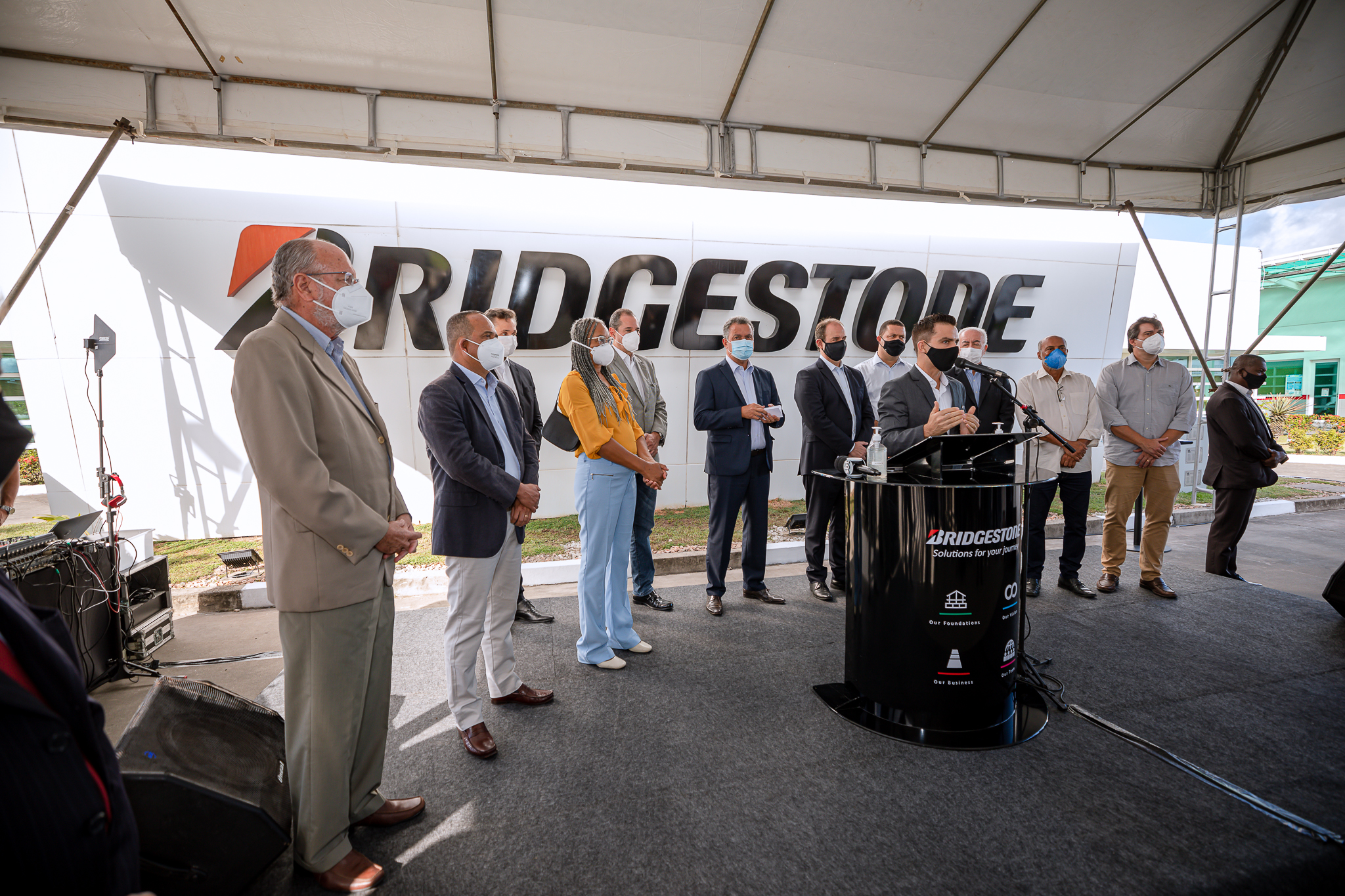 O prefeito Elinaldo Araújo participou, na tarde desta quarta-feira (30/6), do evento que anunciou e celebrou o contínuo investimento e os novos projetos da planta da Bridgestone do Brasil em Camaçari. Na oportunidade, foi anunciada, pelos executivos da fabricante japonesa de pneus, a ampliação e modernização da unidade o que acarretará no progresso de novos investimentos, desenvolvimento da capacidade produtiva da unidade, além da geração de mais emprego e renda para o município.