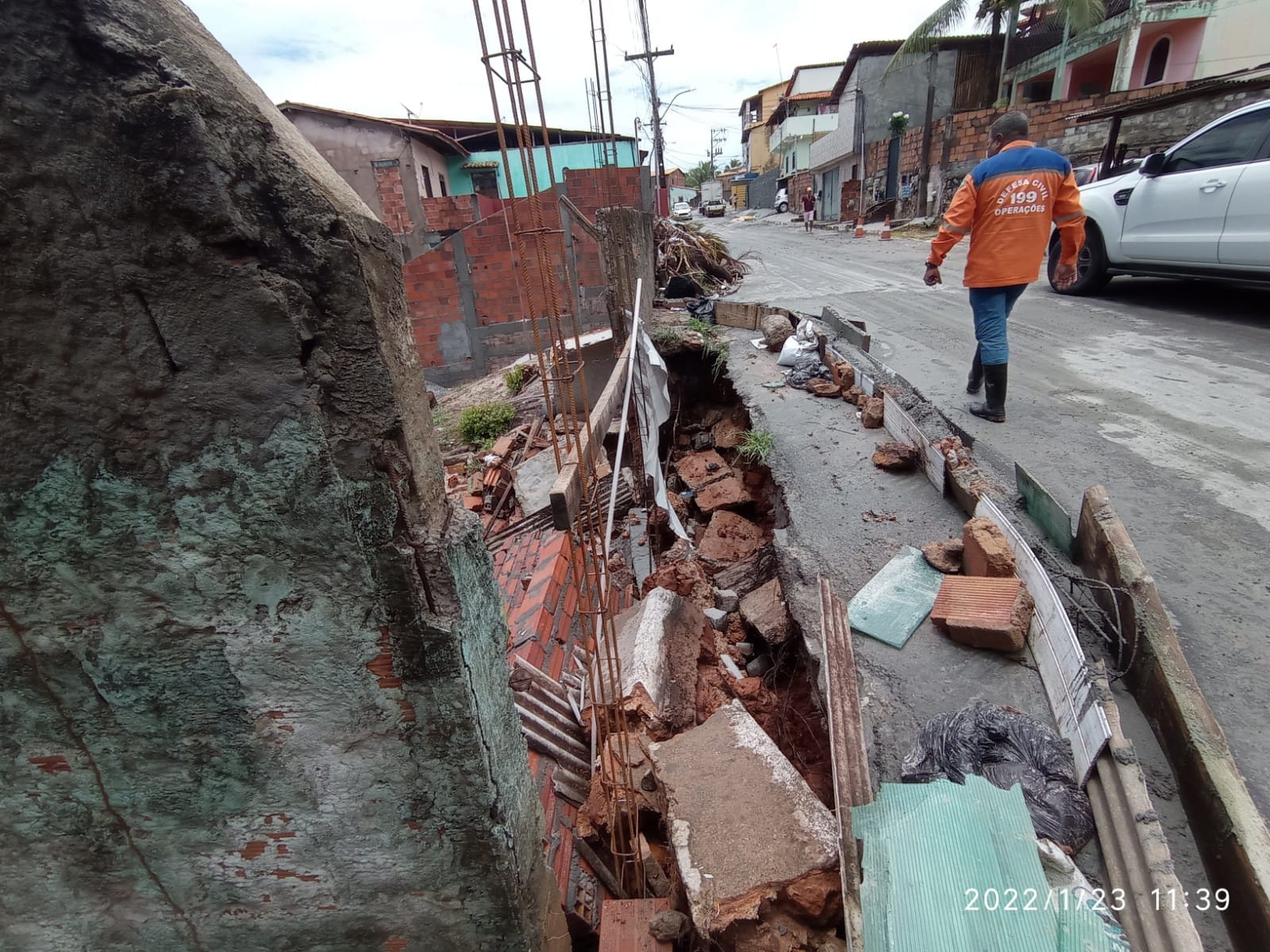 Uma equipe operacional da Defesa Civil esteve presente das Ruas da Embasa, da Rodagem e da Aldeia, além de outros pontos críticos do distrito. Em uma das residências visitadas um muro caiu, mas apesar do susto ninguém ficou ferido.