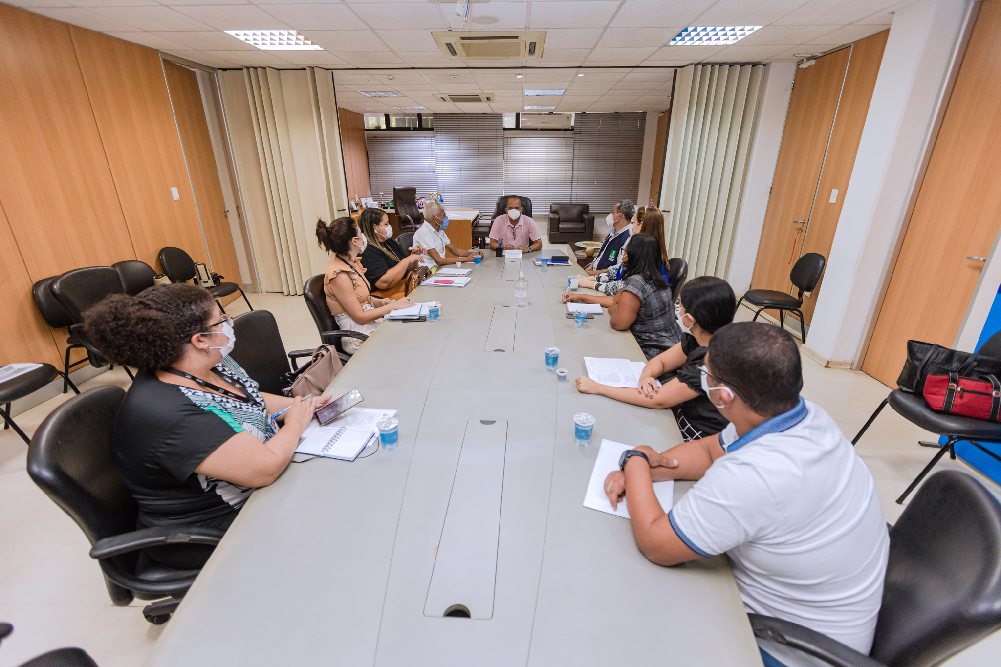 O prefeito Elinaldo Araújo reuniu-se na manhã desta quarta-feira (9/2) com o colegiado gestor da Secretaria da Saúde (Sesau), gerida pelo secretário Elias Natan, para discutir o andamento do planejamento da pasta para 2022. Na pauta estavam, o fluxo de atendimento nas unidades de saúde, o Sesau Fila Zero, a campanha da vacinação contra a Covid-19, a Unidade de Saúde da Família (USF) e Pronto Atendimento (PA) Nova Aliança, o multicentro de especialidades de Abrantes, a nova policlínica da sede, a nova Unidade Básica de Saúde (UBS) da Gleba B, entre outros temas.