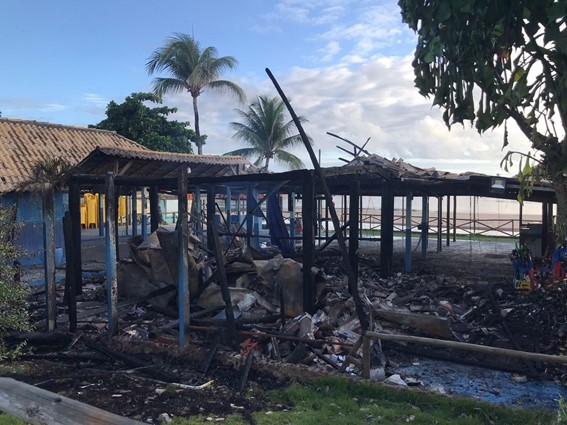Parte da estrutura do estabelecimento, que ficava virada para o calçadão, caiu. Dezenas de caixas de cerveja, que estavam empilhadas, derreteram. Centenas de garrafas foram destruídas. O fogo também atingiu cadeiras empilhadas em uma barraca vizinha, porque os muros são baixos.