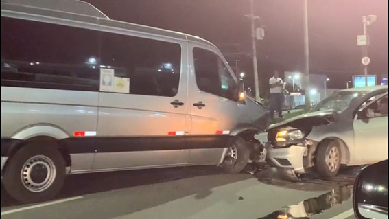 O motorista de um carro ficou ferido após invadir contramão e bater em uma van, na Avenida Santos Dummont, que fica em Lauro de Freitas. O acidente aconteceu na madrugada desta quinta-feira (26).