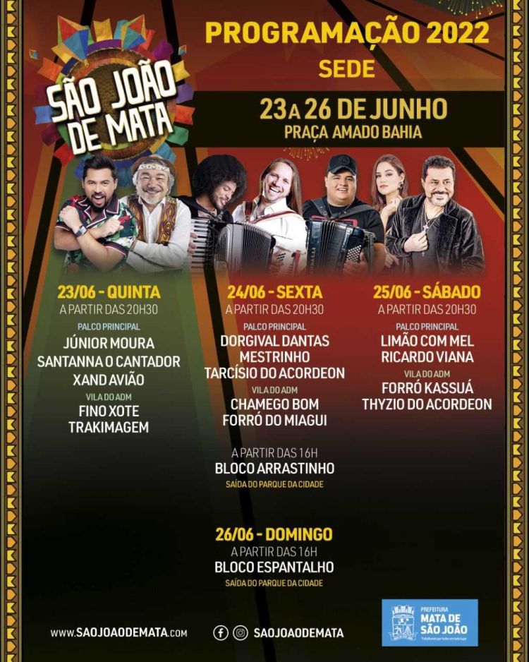 Mais de 20 atrações vão esquentar o clima de São João, durante quatro dias, na comemoração do Arraiá de Ipitanga 2022, em Lauro de Freitas. De 22 a 25 de junho, a grade do festejo junino conta com nomes como Thiago Aquino, Tierry, Falamansa, Estakazero, Kart Love, entre outros. A programação ainda conta com manifestações culturais nos dias 24 e 26/06.