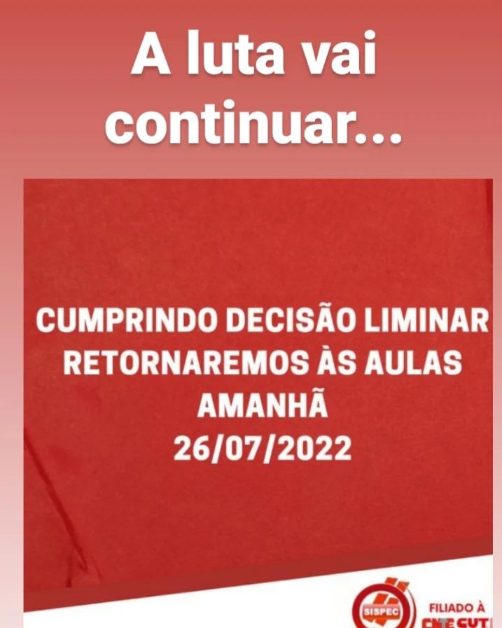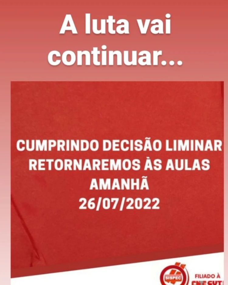 Após assembleia realizada na manhã desta segunda-feira (25/07), no auditório Maria da Paixão, na sede do Sindicato dos Professores e Professoras da Rede Pública de Ensino de Camaçari (SISPEC), a categoria decidiu encerrar a greve. Uma liminar do Tribunal de Justiça da Bahia (TJ-BA), determina o retorno imediato dos professores à sala de aula, considerando a paralização ilegal.