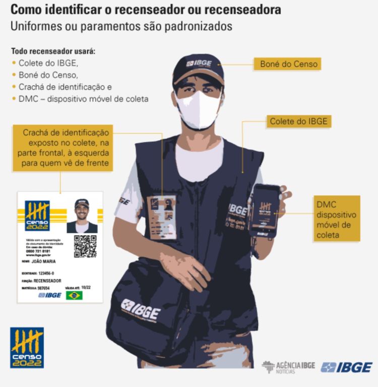 Cada um das centenas de moradores dos diversos bairros da cidade que já receberam o servidor do IBGE em casa, pôde observar que os trabalhadores atuam, devidamente identificados com um crachá, contendo o nome completo e a matrícula. Além disso, eles usam colete, boné, uma bolsa com a marca do Censo e um aparelho de celular, disponibilizado pelo instituto, onde registram as informações da pesquisa.