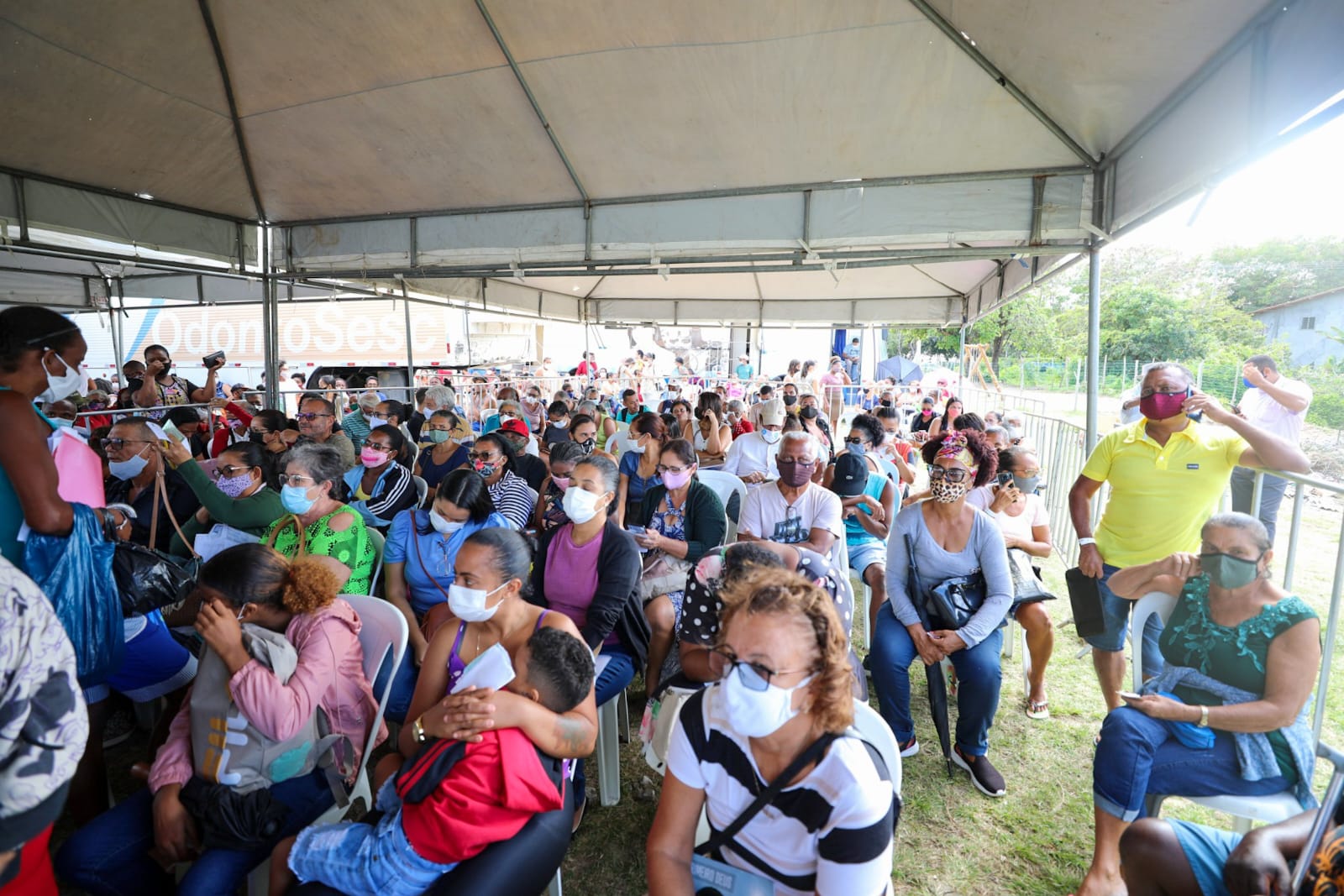 A ação envolve cerca de 100 profissionais. A Sesau ainda disponibiliza um esquema de transporte para buscar as pessoas residentes nas áreas mais remotas e trazer até o local onde estão sendo realizados os atendimentos.