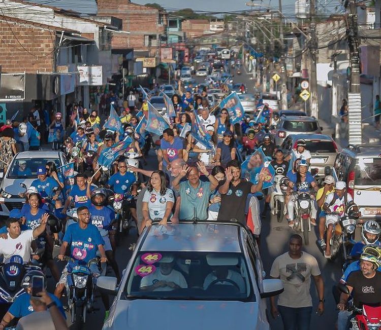 O prefeito de Camaçari, Elinaldo Araújo, prestigiou da mega carreata do candidato a deputado estadual pelo União Brasil, Manuel Rocha, na tarde deste sábado (17/9), na sede do município. A atividade, que movimentou as ruas da cidade, teve como ponto de partida o Espaço Camaçari 2000, e seguiu por diversos bairros e avenidas, totalizando 14 quilômetros de percurso.