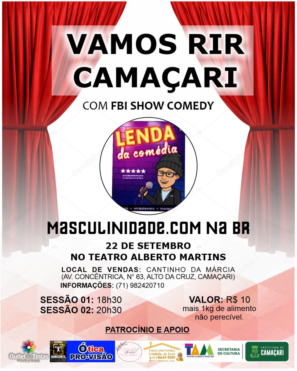 O comediante FBI Show Comedy apresenta no dia 22 de setembro, no Teatro Alberto Martins, o espetáculo Masculinidade.com na BR, contando a história de sua infância de uma forma irreverente. O artista também aborda no show sobre paquera, relacionamentos, terceira idade e o período pós-pandêmico. O evento acontece em duas sessões, às 18h30 e às 20h30.