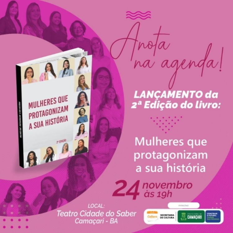 Com a coautoria de 11 mulheres de Camaçari, o segundo volume do livro "Mulheres Que Protagonizam a Sua História" será lançado no dia 24 de novembro, às 19h, no Teatro Cidade do Saber. O evento, que tem entrada gratuita, conta com o patrocínio da Secretaria da Cultura (Secult).