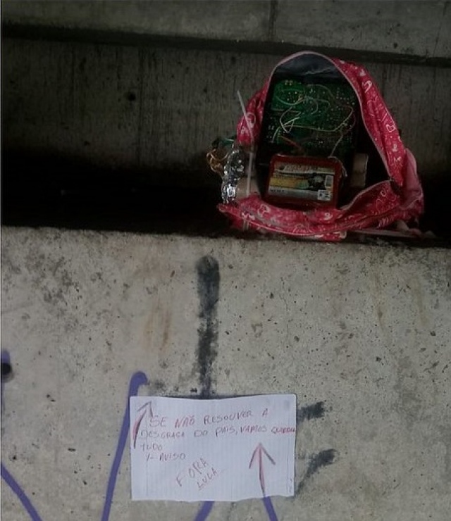 Um trecho do viaduto da Cerb, na Avenida Eduardo Fróes da Mota, em Feira de Santana, foi interditado na tarde desta terça-feira (10/01), após a descoberta de uma mochila contendo um artefato suspeito de ser um explosivo. Um pedestre acionou a polícia ao ver uma mensagem deixada ao lado do objeto em alusão às eleições e o momento político do país. "Se não resolver a desgraça do país, vamos quebrar tudo. 1º aviso. FORA LULA".