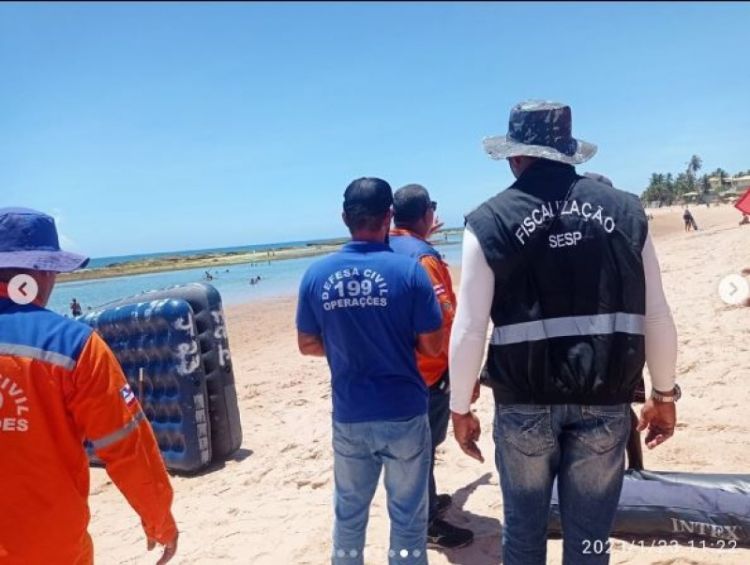 Equipes da Defesa Civil de Camaçari realizaram na manhã desta segunda-feira (23) uma operação para coibir o comércio irregular de colchões infláveis nas praias da Costa.
