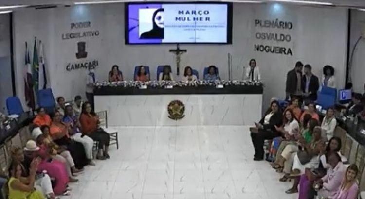 Na Sessão Especial em alusão ao Dia Internacional da Mulher, realizada na manhã desta quarta-feira (08/03), na Câmara Municipal de Camaçari, foram pautados diversos assuntos, dentre eles a violência contra a mulher em Vila de Abrantes. A atividade foi requerida e presidida pela vereadora Professora Angélica (PP).