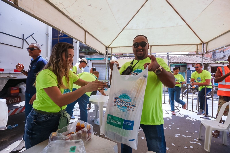 A Prefeitura de Camaçari, através da Secretaria do Desenvolvimento Social e Cidadania (Sedes), realizou o segundo dia da entrega da Cesta de Páscoa, neste domingo(2/4). A distribuição do benefício que contemplou os moradores da sede segue até segunda-feira (3/4).