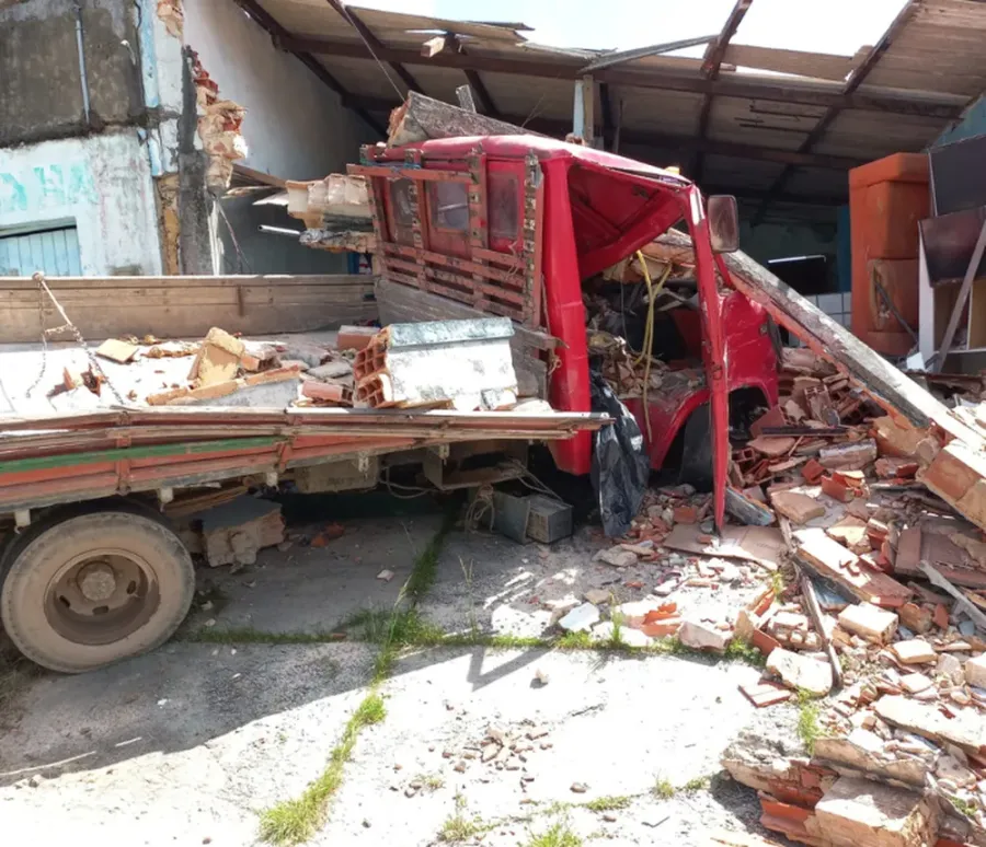 De acordo com informações da prefeitura, o ferido era ajudante do motorista e fraturou o braço. Ele foi levado para o hospital Municipal e segue internado. O acidente aconteceu depois que o caminhão perdeu o freio. O veículo estava carregado com materiais de construção e ficou totalmente destruído após a batida.