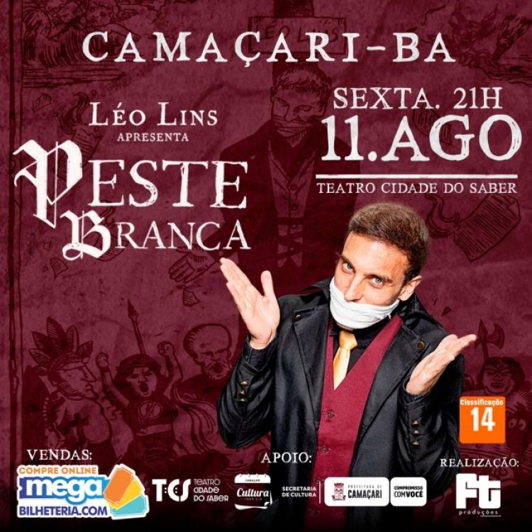 Conquistando a atenção e o riso do público por onde passa, o renomado comediante Léo Lins tem encantado plateias de todo o país com o show de stand up comedy Peste Branca. Com patrocínio da Secretaria da Cultura (Secult), o espetáculo chega a Camaçari no dia 11 de agosto, às 21h, no palco do Teatro Cidade do Saber (TCS).