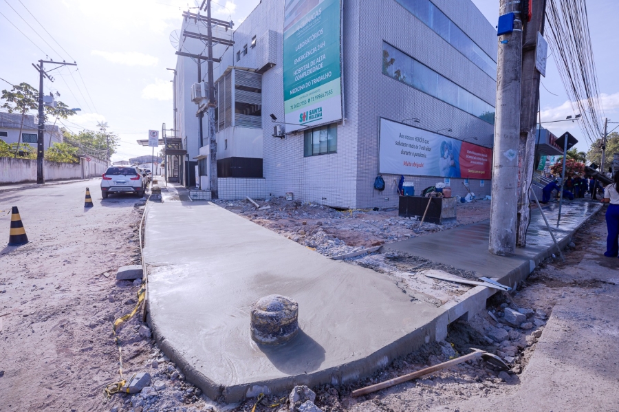 De acordo com a equipe técnica da Seinfra, os trabalhos estão concentrados nas imediações do Hospital Santa Helena, situado no bairro Camaçari de Dentro, abrangendo também diferentes trechos da via. As intervenções envolvem a demolição de passeios e meios-fios existentes; a instalação de novos meios-fios; assentamento do piso intertravado, tipo sextavado (seis lados); e a concretragem dos passeios.