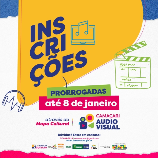 Promovido pela Prefeitura de Camaçari, através da Secretaria da Cultura (Secult), o certame é o primeiro de quatro editais a ser realizado no município com aplicação dos recursos da Lei Paulo Gustavo (LPG). A inscrição deve ser feita através do Mapa Cultural de Camaçari, por meio deste link.