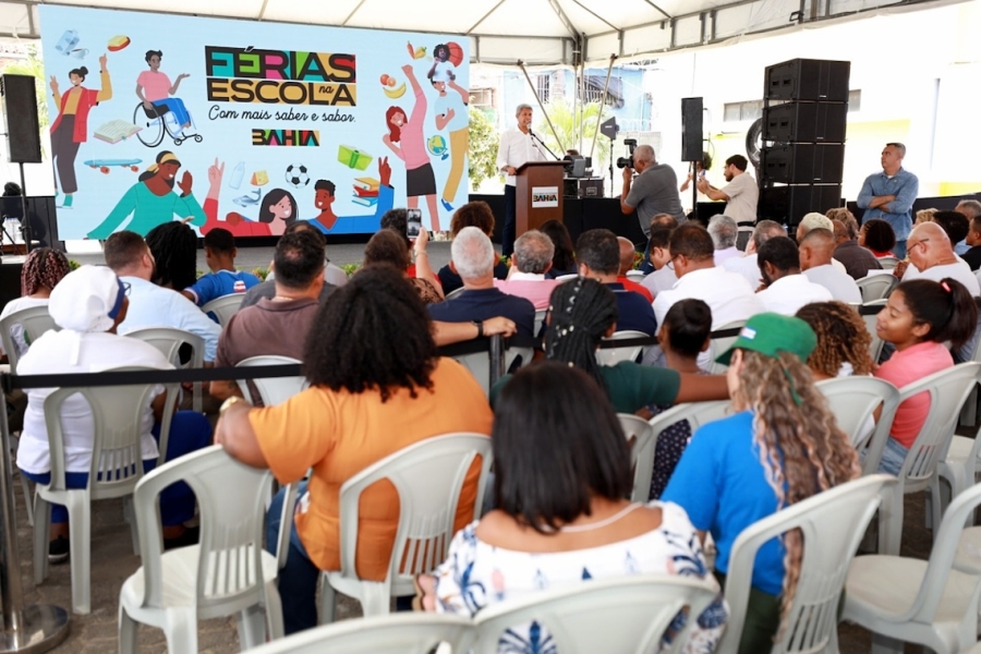 O projeto Férias na Escola com mais sabor e saber foi lançado, nesta quarta-feira (10), pelo governador Jerônimo Rodrigues (PT), no Colégio Estadual de Tempo Integral Professora Noêmia Rego, no bairro de Valéria, em Salvador. A iniciativa oferece oficinas e outras atividades a 131 mil estudantes da rede estadual de ensino, em cerca de 500 escolas pela Bahia.