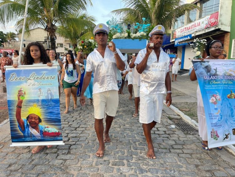 Às 5h30 o cortejo saiu do Barracão de Iemanjá até a praia, onde 15 embarcações fizeram o cortejo marítimo para entregar os presentes a Rainha do Mar. “Um evento de cunho religioso e cultural. Um presente de mais de 150 anos. Uma tradição que iniciou aqui com Tia Lindaura, que hoje não está aqui fisicamente entre nós, mas segue com uma comissão da comunidade que assumiu essa responsabilidade, e todos os anos estamos aqui a reverenciando, agradecendo e pedindo graças”, contou Branca Patrícia.