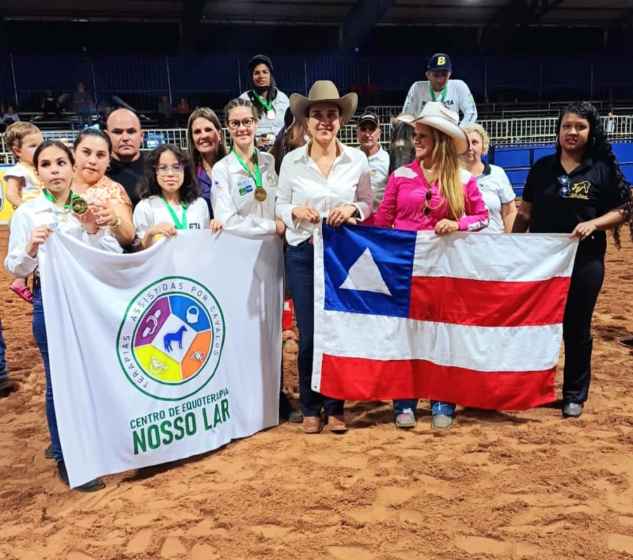 Com 100% de aproveitamento, a equipe de paratletas do Centro de Equoterapia Nosso Lar é pioneira na região Nordeste, e na Bahia, e pelo segundo ano vem colecionando títulos nacionais, como os de 1º e 5º lugar, em 2023, no 46º Campeonato Nacional do Quarto de Milha, da ABQM, na modalidade paratambor.