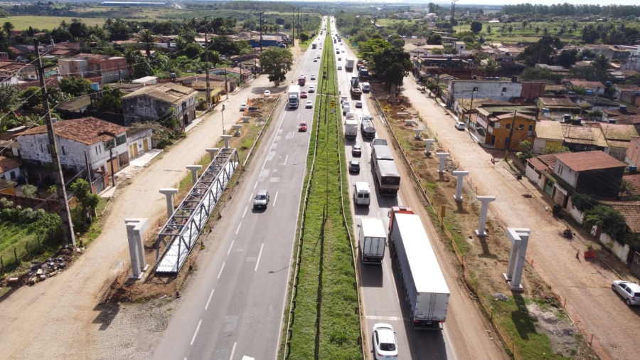 Neste domingo (14), a VIABAHIA implantará um desvio temporário no KM 535+250 da BR-324, próximo à Comunidade do Bessa, para instalação das rampas e vão central da nova passarela.
