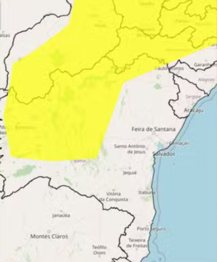 Entre as cidades citadas no alerta do Inmet, estão Lençois e Mucugê, na região da Chapada Diamantina; Barreiras e Luís Eduardo Magalhães, no oeste; e Juazeiro e Xique-Xique, no norte do estado. Salvador e Região Metropolitana, não estão incluídas na lista de municípios afetados.