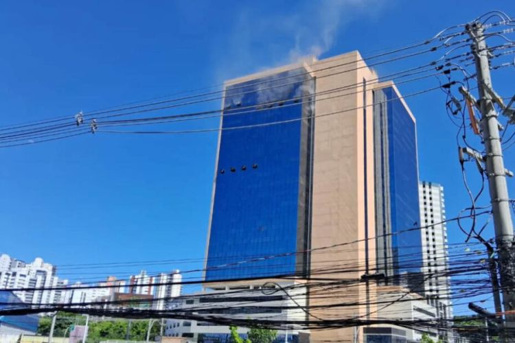 Um incêndio atingiu o 22º andar do Edifício Empresarial Thomé de Souza, localizado na Avenida Antônio Carlos Magalhães, em Salvador, nesta segunda-feira (09). As chamas assustaram pessoas que trabalhavam no local.