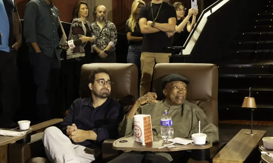 Sentado na primeira fileira do cinema, Milton Nascimento assiste aos depoimentos na tela com um sorriso e um olhar emocionado. Mesmo aos 82 anos, com uma história longa de sucesso, é difícil ficar impassível ao ouvir tantos artistas nacionais e internacionais falando dele com admiração e respeito.