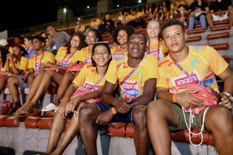 Recepção oficial das delegações classificadas nas fases anteriores (Escolar, Territorial e Interterritorial), apresentações culturais e execução do Hino Nacional pela banda percussiva Yayá Muxima marcaram a programação de abertura da Etapa Estadual dos Jogos Escolares, cujas competições seguem até 27 de julho, com disputas nas modalidades coletivas (futsal, basquete, vôlei e handebol), nos jogos digitais e nos esportes individuais, como atletismo, natação, judô, xadrez e ginástica.