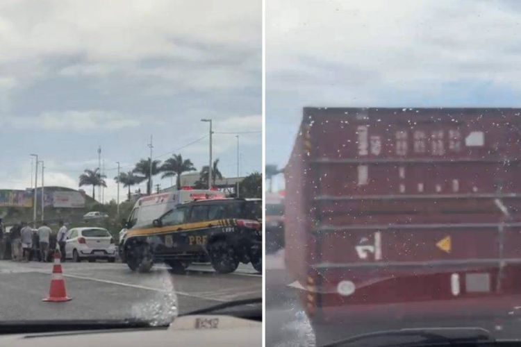 Um contêiner se desprendeu de uma carreta e ficou atravessado na pista, interditando parte da BR-324, neste domingo (13), no sentido Feira de Santana. De acordo com informações, ninguém se feriu.
