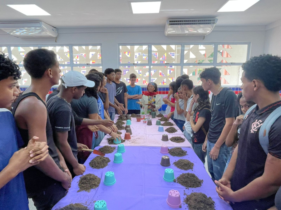 Está acontecendo no Colégio Estadual de Vila de Abrantes (CEVA), o Projeto Gaia, que integra um outro grande projeto que há anos acontece na instituição, o Café Filosófico. A ideia é incentivar o sentimento de pertencimento e cuidado com a escola, bem como promover e incentivar boas práticas relacionadas ao meio ambiente, o social e o cotidiano.