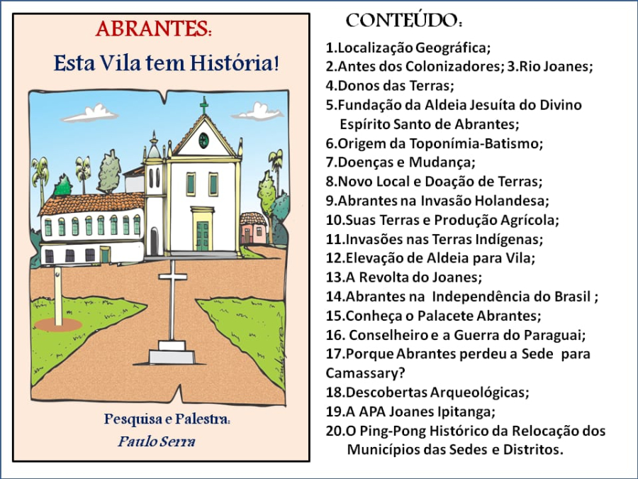O escritor de Vila de Abrantes, Paulo Serra, vai lançar seu livro “Abrantes: Esta Vila tem História”, dia 27 de setembro, no Ferreira Costa do Barris, 2º piso, no Pelourinho, em Salvador, das 15h30 às 20h30. A edição tem 120 páginas e é toda em cordel.