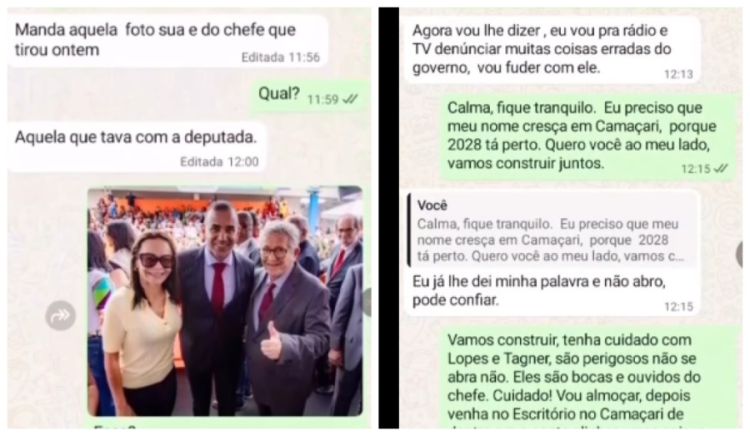 Na tarde desta terça-feira (21/10), o diretor presidente da Limpec, Júnior Borges, emitiu uma nota de repúdio desmentido uma suposta conversa entre ele e seu assessor Vinícius Cordeiro, que circula nas redes sociais. Vínicius, que estaria correndo o risco de ser exonerado, mas teria o cargo mantido a pedido do ex-vereador que tentaria mudar a decisão do prefeito Luíz Caetano. Na gravação de tela tem ainda comentários negativos sobre o chefe do executivo, o vereador Tagner Cerqueira, o secretário de Relações Institucionais (Serin), Ademar Lopes e também a servidora Fátima Trabuco.