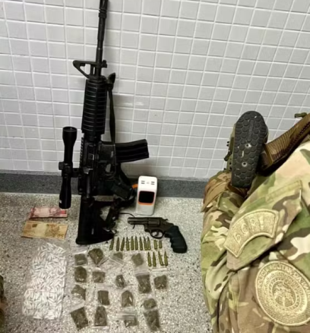 Segundo a Polícia Militar (PM), agentes da 22º Companhia Independente da PM patrulhavam, quando foram informados sobre tráfico de armas e drogas em uma área de mata, na localidade conhecida como Pitanguinha Velha.