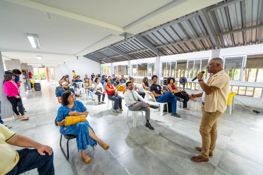 O Pavilhão Ambiental do Horto Florestal de Camaçari foi palco nesta terça-feira (11) do workshop “Da Tradição à Inovação: um diálogo sobre Povos Originários e Cidades Sustentáveis”. A iniciativa, promovida pelo Instituto de Ciência, Tecnologia e Inovação (ICTI) da Universidade Federal da Bahia (UFBA), contou com apoio da Prefeitura de Camaçari, por meio da Secretaria de Desenvolvimento Social e Cidadania (Sedes), e integrou a programação oficial do Novembro Negro. Estiveram reunidas lideranças de povos originários, pesquisadores e estudantes, em um encontro marcado pela escuta, pelo saber e pela construção coletiva.