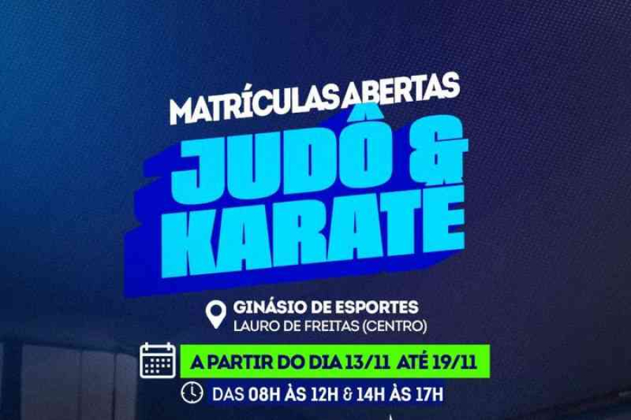 Consolidando-se como a cidade do esporte, a Prefeitura de Lauro de Freitas, por meio da Secretaria Municipal de Cultura, Lazer, Juventude e Esporte (SECULJE), abre nesta quinta-feira (13/11) as inscrições para aulas gratuitas de Judô e Karatê voltadas a crianças e adolescentes de 5 a 17 anos.