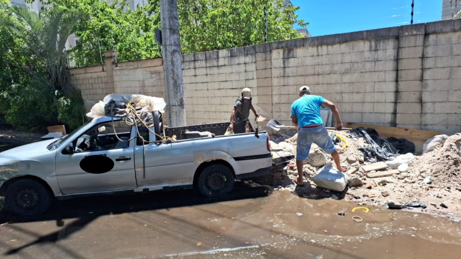 Uma equipe de fiscalização da Sesp foi acionada e imediatamente chegou ao local. Segundo o servidor, o proprietário do carro foi autuado e teve que recolher todo o material que estava descartando.