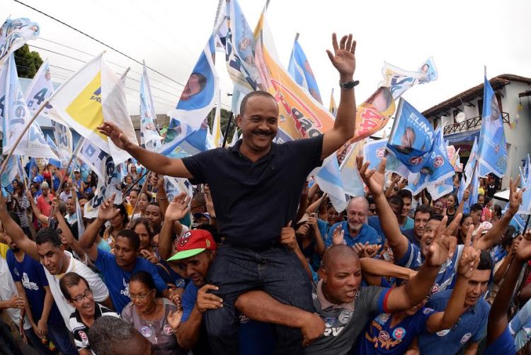 Ao final do trajeto, o candidato democrata subiu na arquibancada e foi abraçado por muitos espectadores do desfile, que aproveitaram para fazer selfies com o parceiro do povo, como Elinaldo é conhecido na cidade.