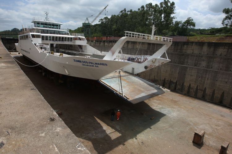 O Maria Bethânia entrou no estaleiro da Base Naval de Aratu para reparos do eixo e hélice
